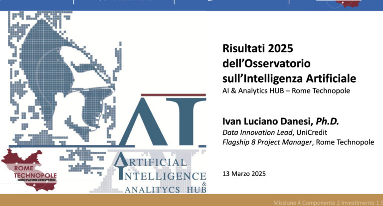 L’iniziativa ha rappresentato il kick-off dell’Artificial Intelligence & Analytics Hub by Rome Technopole, un progetto nato per supportare le imprese nell’adozione consapevole e regolamentata dell’Intelligenza Artificiale, con un approccio concreto e orientato ai risultati.