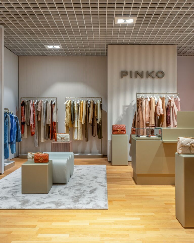 Sviluppato su circa 30 mq, il nuovo store è concepito secondo un design che coniuga eleganza, calore, sensualità e comfort, esprimendo la passione trentennale di PINKO per una femminilità sofisticata e inclusiva. Al suo interno, la sapiente combinazione di materiali di pregio, come legno e ceramiche sostenibili, si fonde armoniosamente con una palette cromatica dai toni sabbia e champagne, creando un equilibrio tra estetica e funzionalità e tra lusso e sostenibilità, perfettamente in linea con il posizionamento del brand nel segmento entry to luxury.